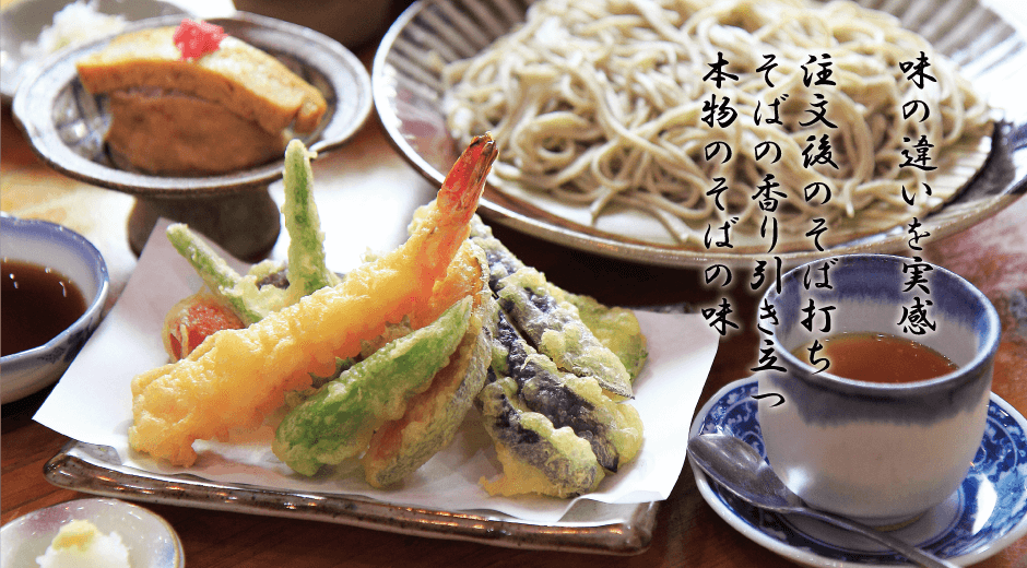 奴庵のおそばは、お客さんから注文が入ってから、おそばを打ち始めます。お客さんが口にするおそばは、まさしく打ちたて!!他では食べることのできない、本物のおそばの風味をつくば市の店舗でもお楽しみ下さい。